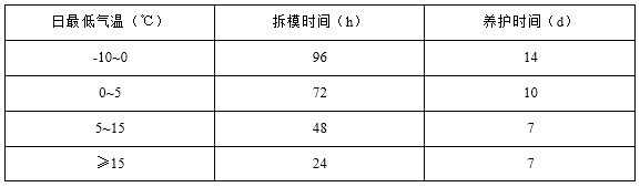 3、灌漿料達(dá)到拆膜時(shí)間后,可進(jìn)行設(shè)備安裝,具體時(shí)間參見(jiàn)“拆膜和養(yǎng)護(hù)時(shí)間及環(huán)境溫度的關(guān)系表”: