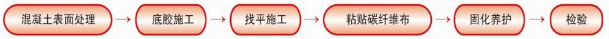 混凝土面應鑿除粉飾層、油垢、污物,然后用角磨機磨去1-2mm厚表層,混凝土構件轉角處應進行倒角處理,打磨完畢后用壓縮空氣吹盡浮塵,后棉布蘸丙酮拭凈表面,保持干燥備用。若被補強的混凝土存在裂縫,應先用筑卡灌漿樹脂進行灌縫修補后再進行補強;